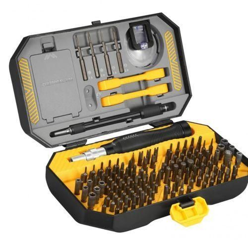 This set stands out for its massive 145-piece coverage and organized layout. It meets diverse repair needs in one compact package. The flexible rod and deep-hole bits access recessed areas easily. Users value the magnetic system for efficiency. The hard case keeps tools protected and portable. Many choose it for professional electronics repair upgrades. It supports intricate disassembly reliably. Durable bits withstand frequent professional use. It handles common and specialty screws smoothly in local conditions. Professionals appreciate the extensive selection and practical accessories. Overall, this kit delivers versatile, high-value solutions for maintenance, disassembly, and assembly across devices.